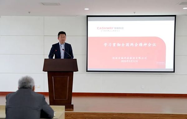 2025-06-303月12日下午,在全國兩會(huì)勝利閉幕后,恒銀科技第一時(shí)間召開學(xué)習(xí)貫徹全國兩會(huì)精神宣講會(huì),全國政協(xié)委員,公司黨委書記、董事長(zhǎng)江浩然宣講全國兩會(huì)精神。會(huì)議由黨委副書記梁曉剛主持,公司領(lǐng)導(dǎo)班子成員、在津總部中層管理人員等參加。